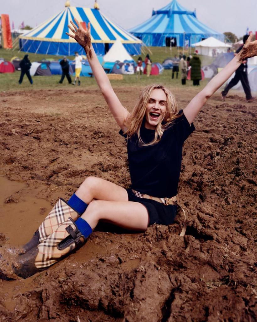 En el Reino Unido llega la época de festivales y la firma inglesa Burberry se unió a la fiebre por la música en vivo, el barro y la moda.