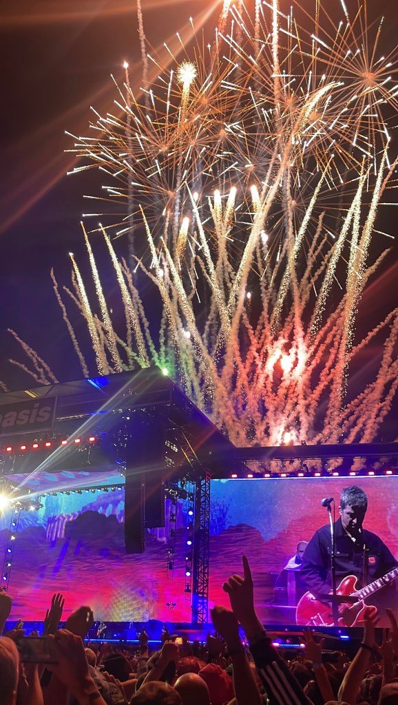 Pasan unos pocos minutos y la banda regresa para el tramo final. Noel presenta a la banda uno por uno, con una merecidísima ovación para Bonehead. Y como si fuera un homenaje para todos nosotros y nuestros miles de Planes de Contingencia, arranca con The Masterplan. Este iba a ser el último momento de paz del show, porque la tríada del final es simplemente épica, inabarcable para cualquier corazón que lata con sangre caliente en las venas: Don’t Look Back in Anger, Wonderwall y Champagne Supernova. El porqué de que Oasis es una de las bandas más grandes de la historia se puede explicar tranquilamente en estas tres canciones. Y en las 80 mil personas coreándolas a grito pelado, más 10 mil personas que no consiguieron entradas pero se agolparon en la puerta del estadio para escuchar el show, tal como pasó en los shows de Manchester y la ya histórica Gallagher Hill.